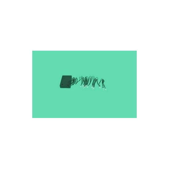 Catena 10 led a luce bianca ultraluminosi funzionante a pile con portabatterie dotato di pulsante on/off.