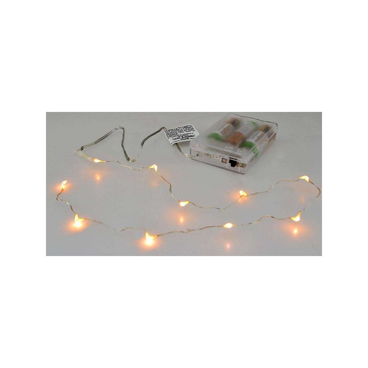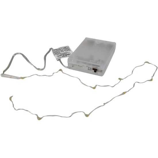 10 Micro Led a luce bianca calda, con porta pile dotato di pulsante per l'accensione e lo spegnimento, per il funzionamento sono necessarie 1 Batterie AA NON incluse acquistabili