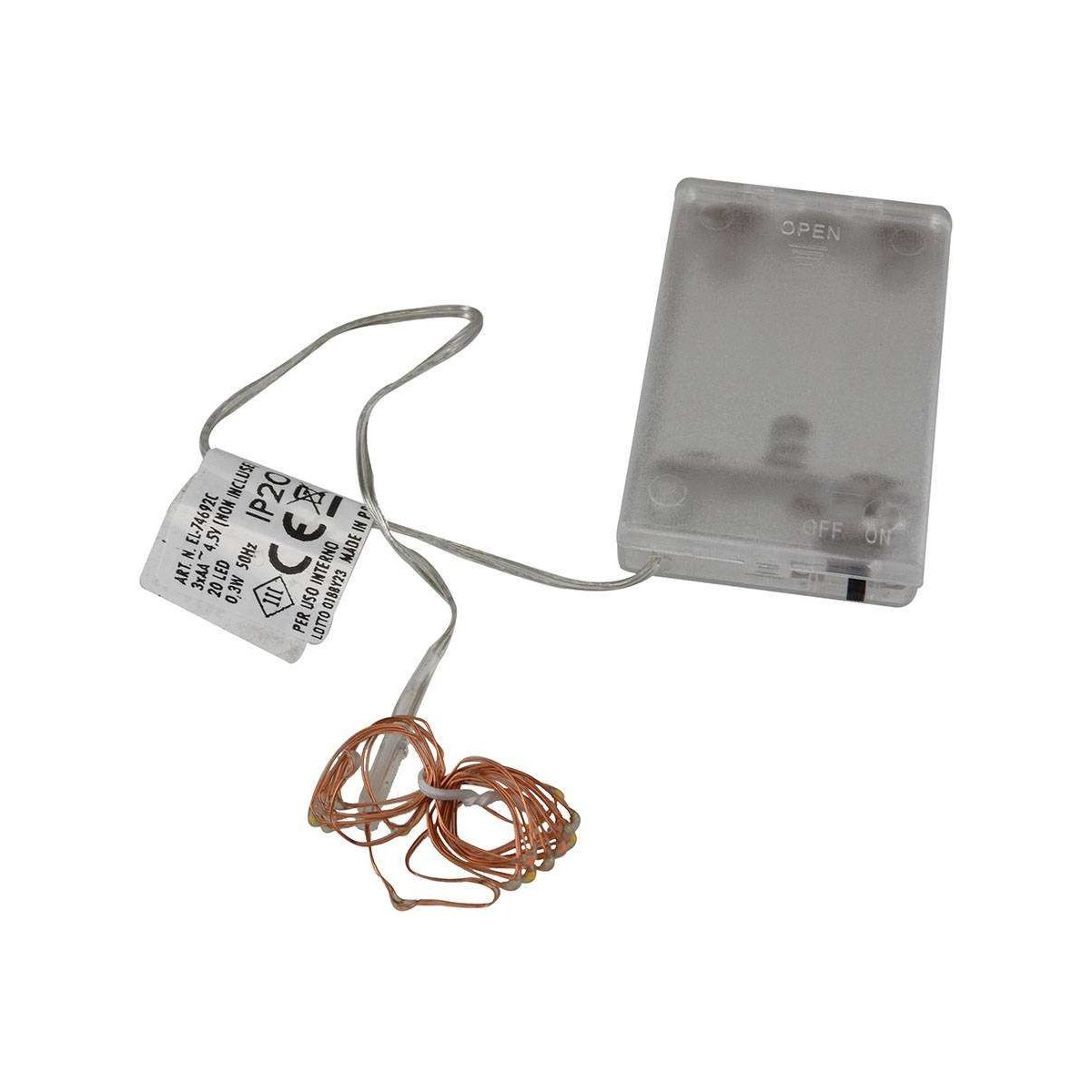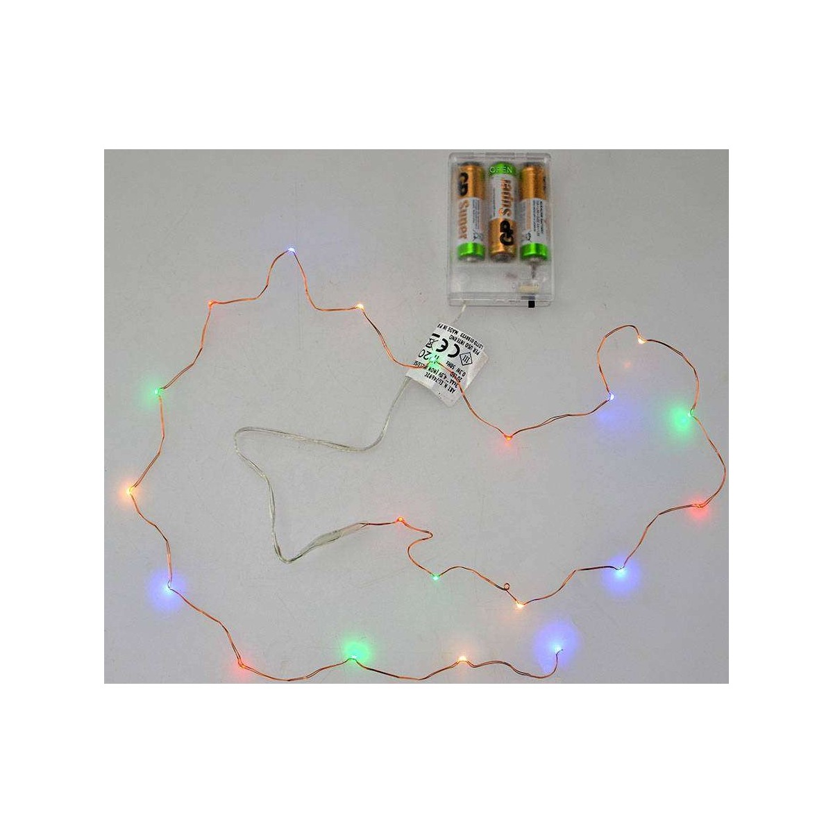 20 Micro Led multicolore, con porta pile dotato di pulsante per l'accensione e lo spegnimento, per il funzionamento sono necessarie 3 Batterie AA NON incluse acquistabili