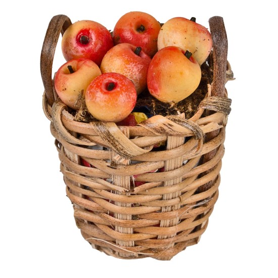 Cesto in vimini con mele in miniatura, consigliato per statuine di altezza da 8 a 10 cm è perfetto per aggiungere dettagli autentici al tuo presepe.