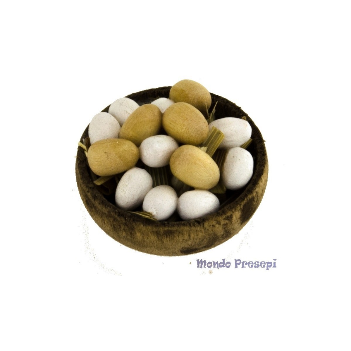 Ciotola in legno con uova.