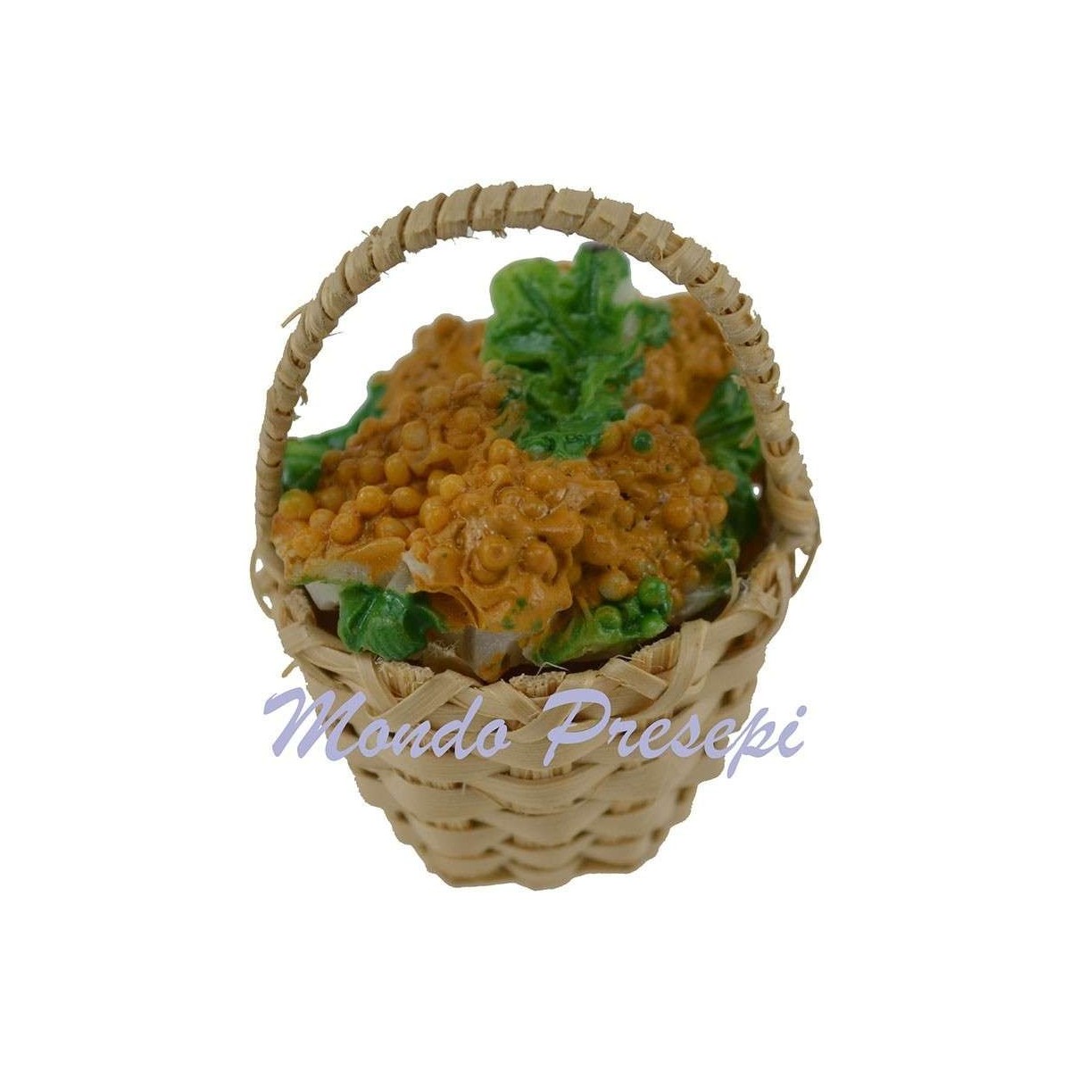 Cesto in vimini con uva bianca in resina dipinta. Consigliato per statue di altezza cm. 10-12.