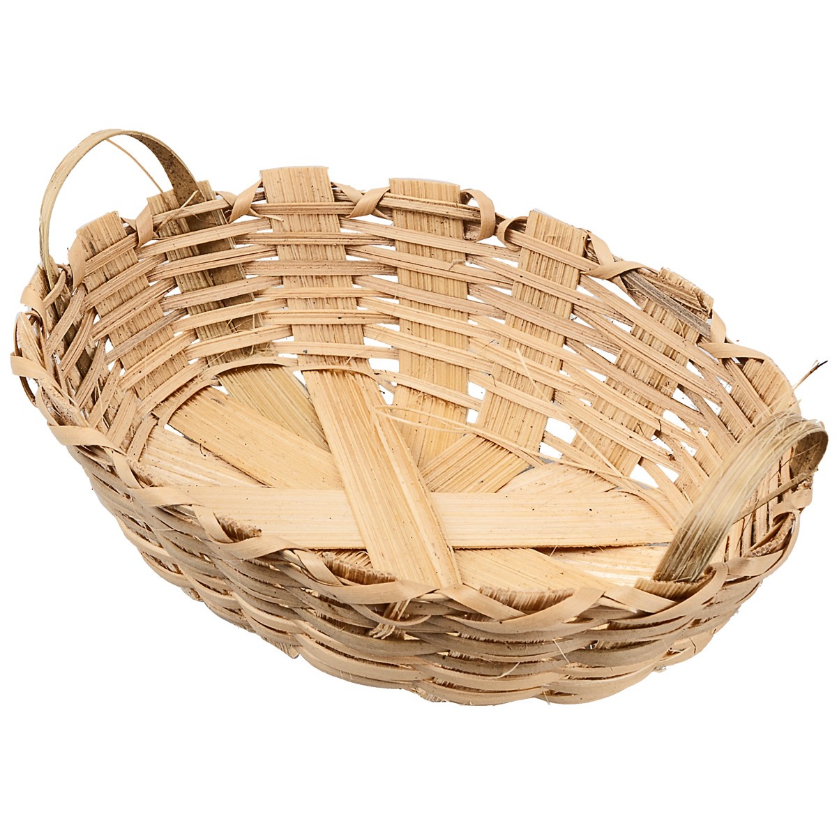 Cesto intrecciato in vimini naturale, di forma bassa e larga, consigliato per statuine di altezza 20-30 cm.