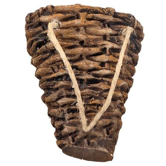 È un cesto da collocare sulle spalle dei pastori, ideale per arricchire scene di mercato o ambientazioni rurali del presepe, aggiungendo realismo e dettagli artigianali.