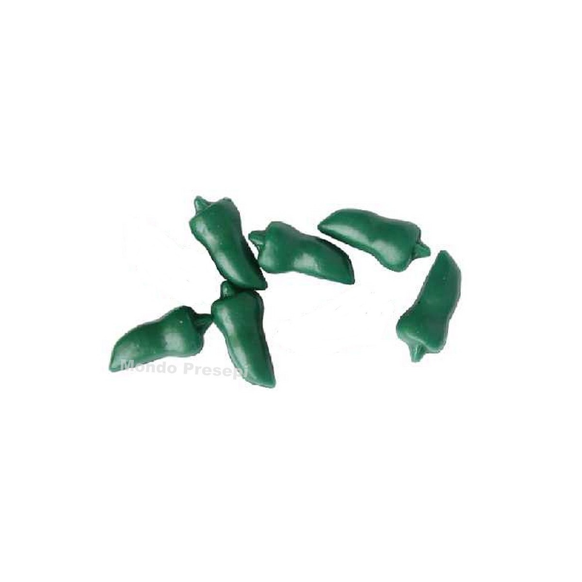 Set 5 peperone verdi, ideali per decorare banchi e cesti.