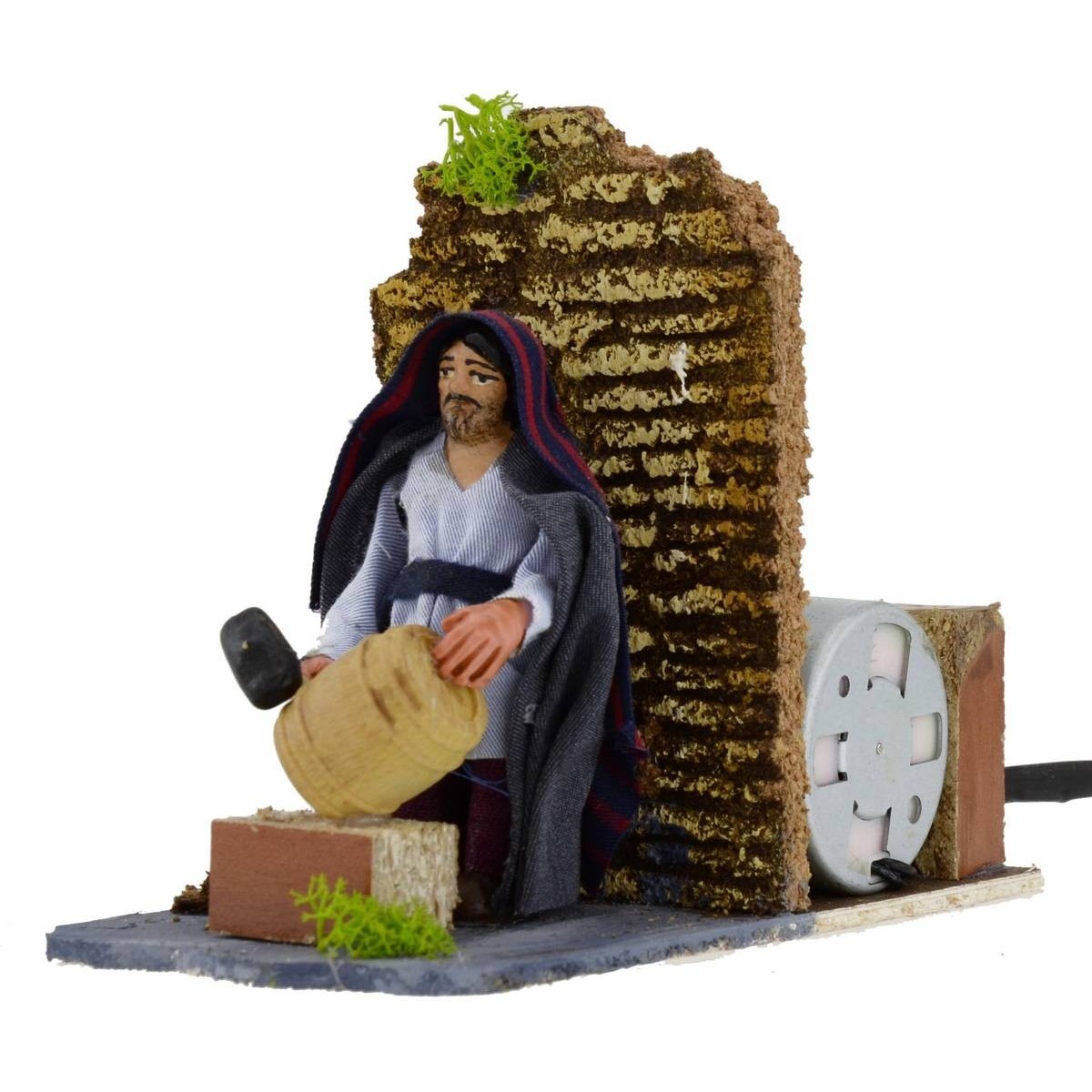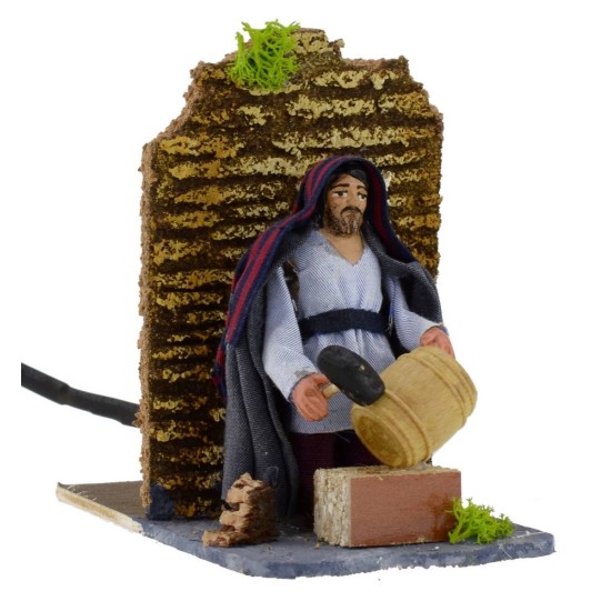 Artigiano in movimento che costruisce la botte. Statua realizzata in terracotta e dipinta a mano in Italia da sapienti mani artigiane, l'articolo risulta ben rifinito con vestiti in tessuto. Statuina adatta al Presepe classico popolare di altezza 8cm.
