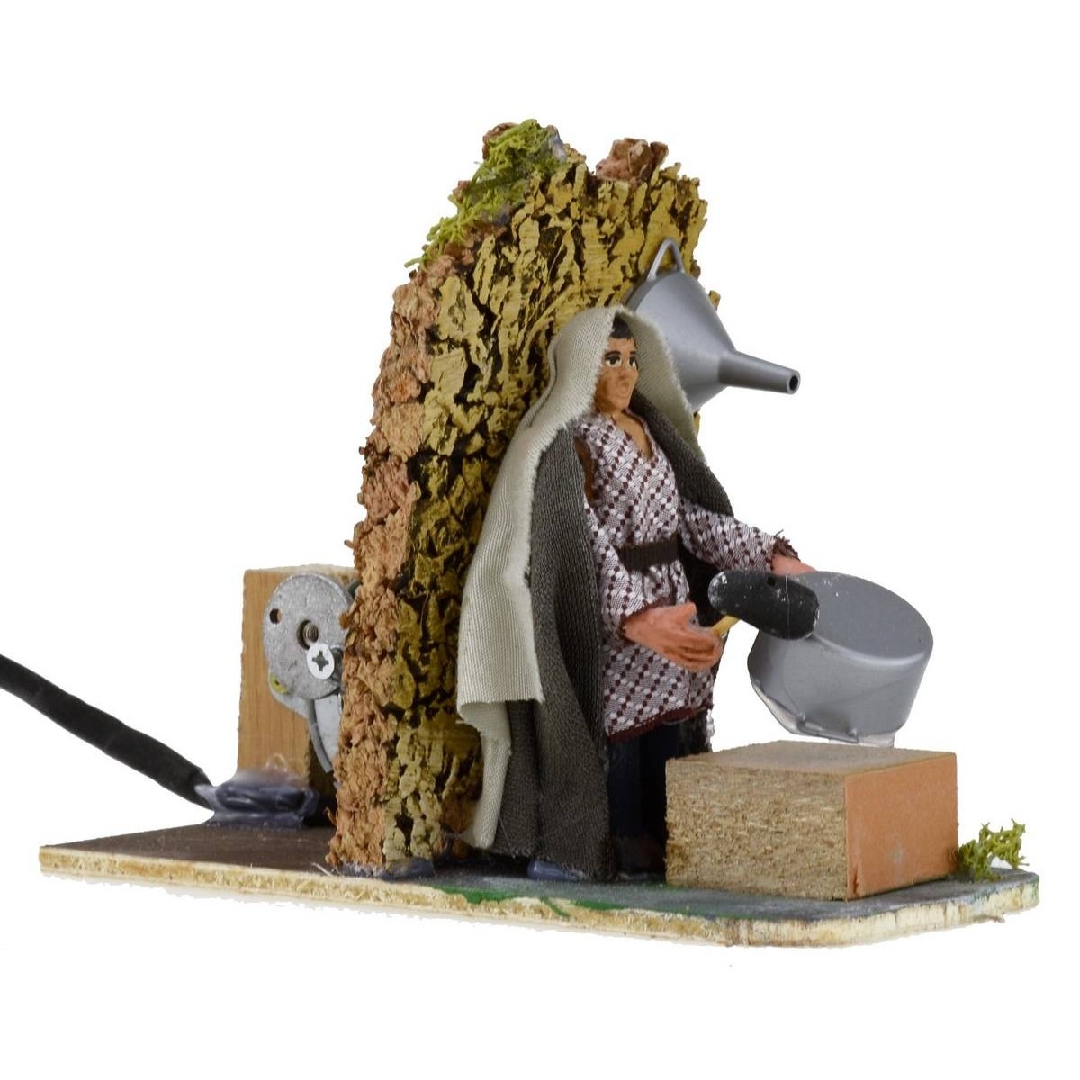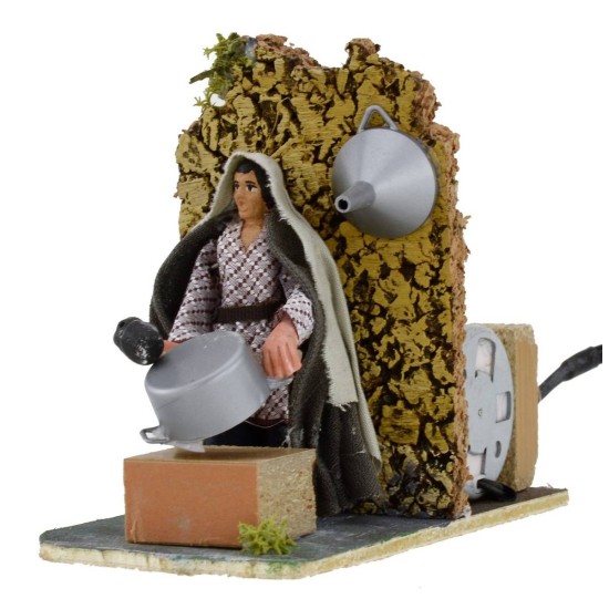 Artigiano in movimento che fabbrica una pentola. Statua realizzata in terracotta e dipinta a mano in Italia da sapienti mani artigiane, l'articolo risulta ben rifinito con vestiti in tessuto. Statuina adatta al Presepe classico popolare di altezza 8cm.
