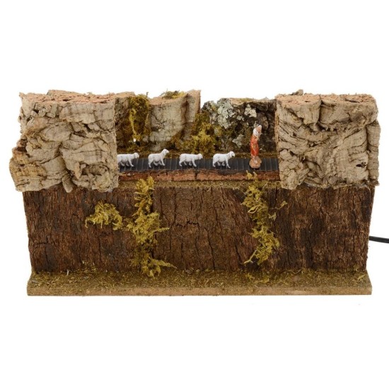 Pastori cm 3,5 Landi in movimento. Un pastore con il gregge di pecore porta un agnello a spalle, seguiti da un uomo con la lanterna e bastone. La scena può essere utilizzata in lontananza per enfatizzare l'effetto prospettico