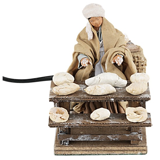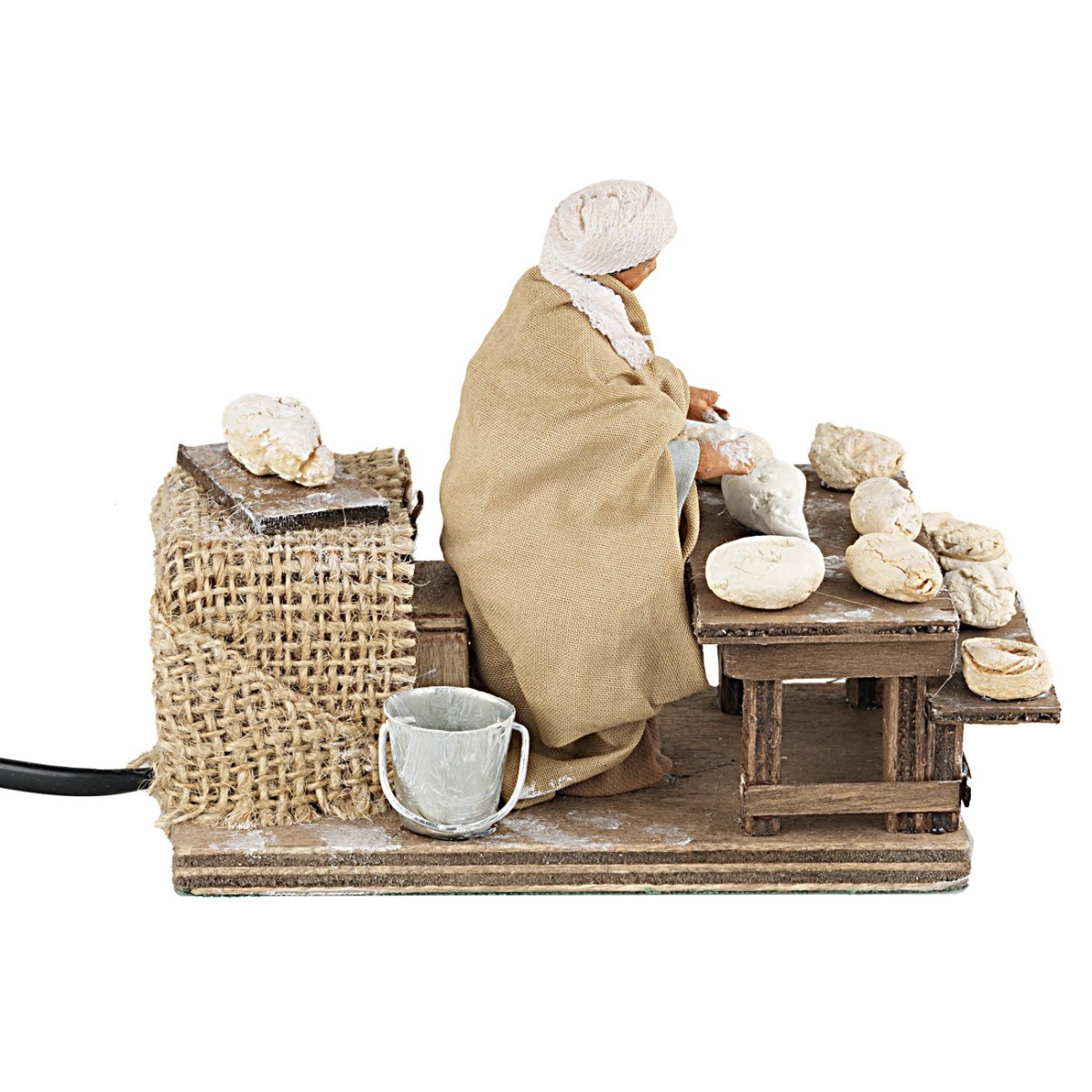 Questa raffinata statuina rappresenta una donna intenta ad impastare su un tavolo di legno, grazie a un movimento dall'alto verso il basso che dona realismo alla scena. Realizzata in terracotta e dipinta a mano in Italia, ogni pezzo è un'opera unica creata con maestria artigianale. Gli abiti in tessuto, curati nei minimi dettagli, conferiscono un tocco di eleganza e autenticità. Perfetta per arricchire il Presepe classico o napoletano, la statuina misura effettivamente 10,5 cm. È alimentata a corrente e i particolari possono variare, garantendo l'unicità di ogni esemplare realizzato a mano.