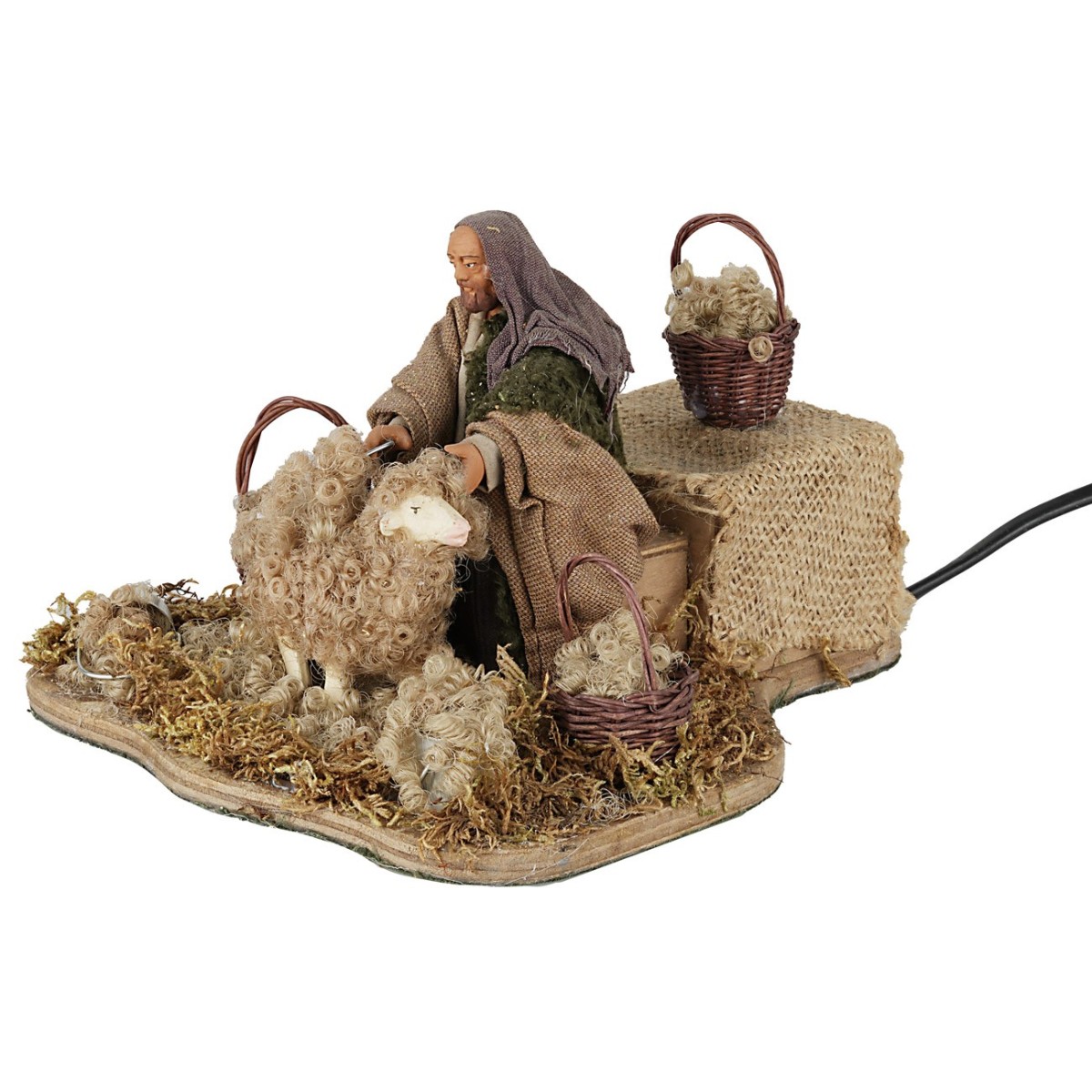 Tosatore serie 12 cm che, con un movimento del braccio, rasa la pecora. La statuina è realizzata in terracotta e dipinta a mano in Italia da sapienti mani artigiane con abiti in tessuto ben rifiniti. La figura per il Presepe classico e/o napoletano è realizzata in terracotta ed è funzionante a corrente. Si precisa che i particolari del prodotto possono variare in quanto realizzato artigianalmente.