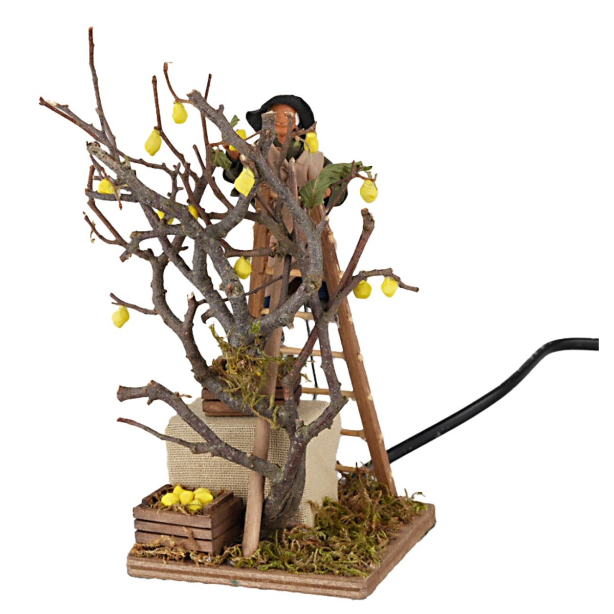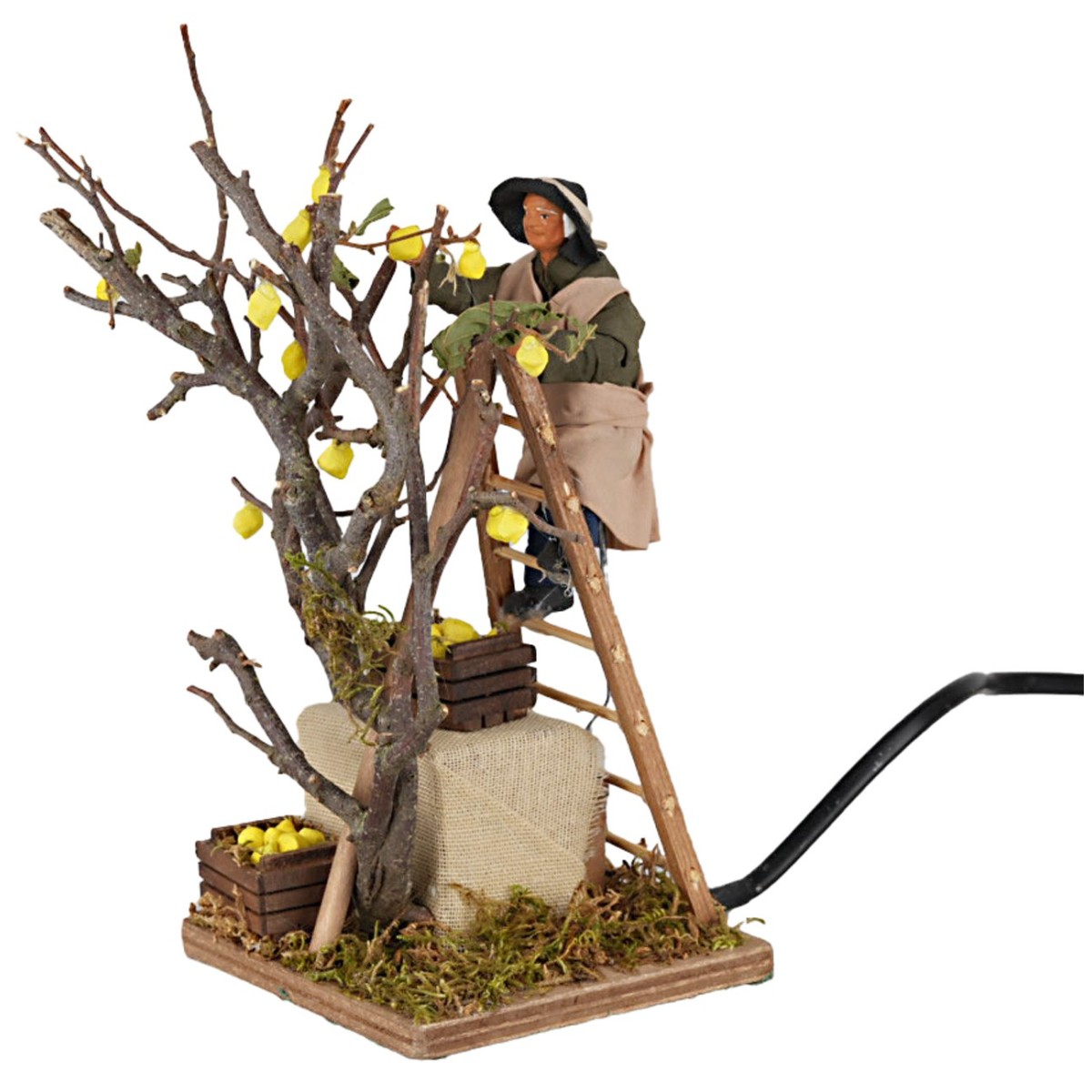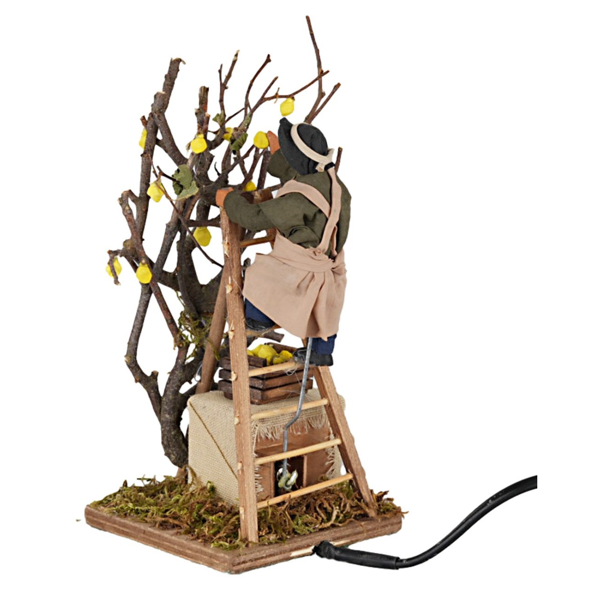 Contadino che, grazie al movimento del braccio, sembra stia raccogliendo i frutti sull'albero. La statuina è realizzata in terracotta e dipinta a mano in Italia da sapienti mani artigiane con abiti in tessuto ben rifiniti. La figura per il Presepe classico e/o napoletano è realizzata in terracotta ed è funzionante a corrente. Si precisa che i particolari del prodotto possono variare in quanto realizzato artigianalmente.