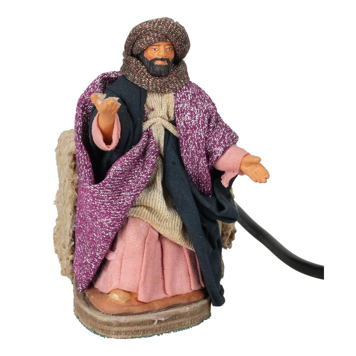 Set Tre Re Magi in movimento, serie 12 cm. Queste affascinanti statuine rappresentano i re magi mentre offrono doni preziosi. Ogni re indossa abiti glitterati e colorati, completi di copricapo, e tiene tra le mani incenso, oro e mirra. Realizzate in terracotta dipinta a mano in Italia da artigiani esperti, le statuine presentano abiti in tessuto ben rifiniti. Perfette per il presepe classico e napoletano, funzionano a corrente. Le caratteristiche come colori, abiti e minuterie possono variare, essendo prodotti artigianali unici.