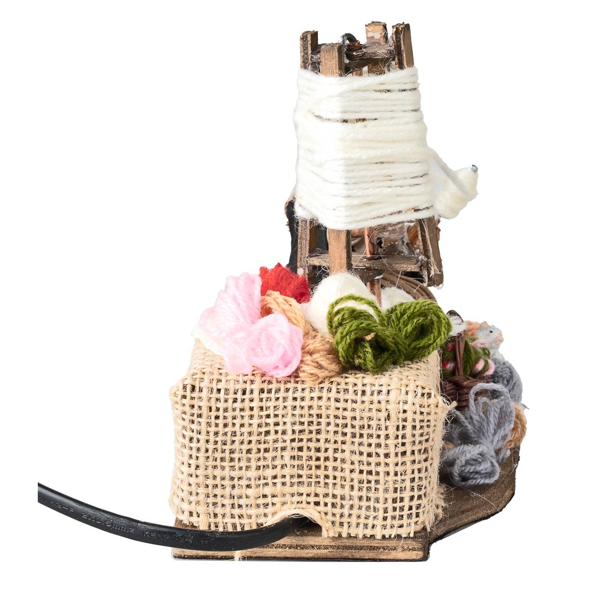 Vecchia che fila la lana serie 10 cm, animata. La figura è in movimento mentre lavora la lana al telaio muovendo il braccio. Realizzata in terracotta dipinta a mano in Italia da abili artigiani, questa statuina presenta abiti in tessuto ben rifiniti. Perfetta per il presepe classico e napoletano, funziona a corrente. I dettagli come colori, abiti e minuterie possono variare, essendo prodotti artigianali unici.