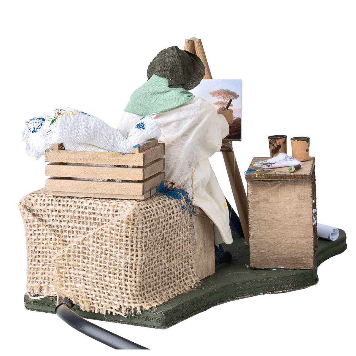 La scena rappresenta un pittore mentre dipinge, con movimenti realistici del braccio sulla tela. L'ambientazione è arricchita da dettagli come tele, barattoli di vernice e strumenti artistici, creando un'atmosfera realistica e coinvolgente.
