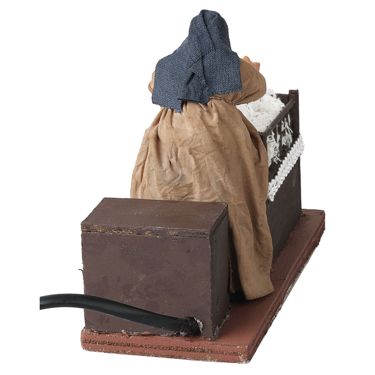 Mamma che prende bimbo dalla culla serie 12 cm, animata. La madre è in movimento mentre si china per prendere il bambino dalla culla. Realizzate in terracotta dipinta a mano in Italia da abili artigiani, presentano abiti in tessuto ben rifiniti. Ideali per il presepe classico e napoletano, funzionano a corrente. I dettagli come colori, abiti e minuterie possono variare, essendo prodotti artigianali unici.