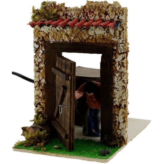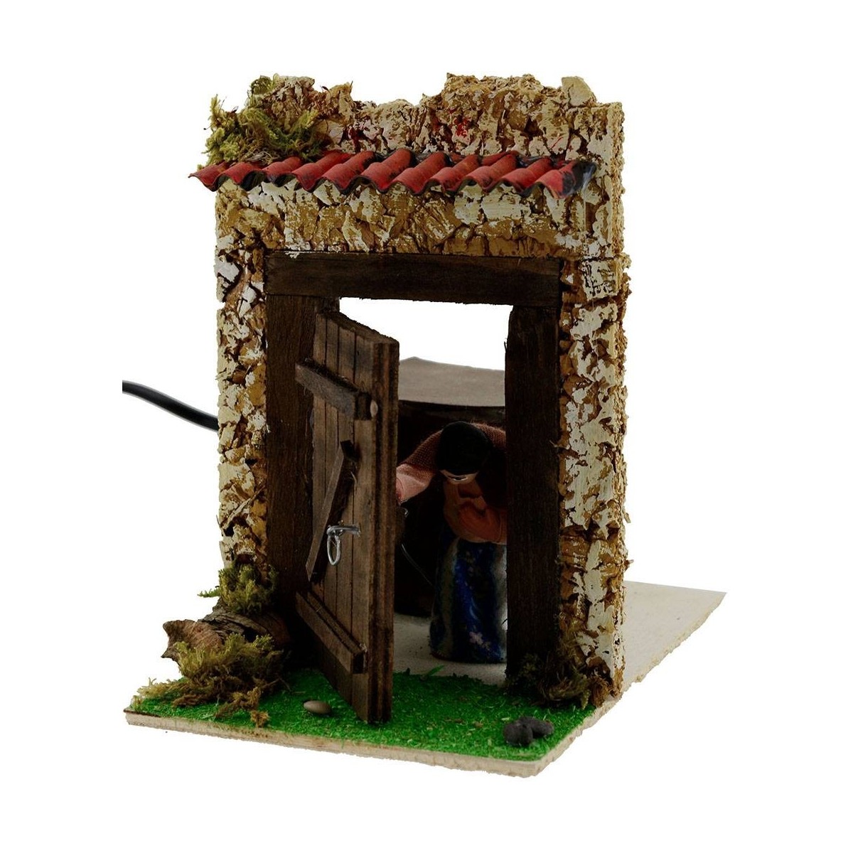 Donna che apre la porta in movimento, funzionante a corrente. Statua in movimento per presepe realizzate in terracotta vestite con tessuto altezza statue 8 cm. Essendo articoli realizzati interamente a mano i colori dei vestiti e alcuni piccoli particolari possono variare rispetto alla foto del prodotto.