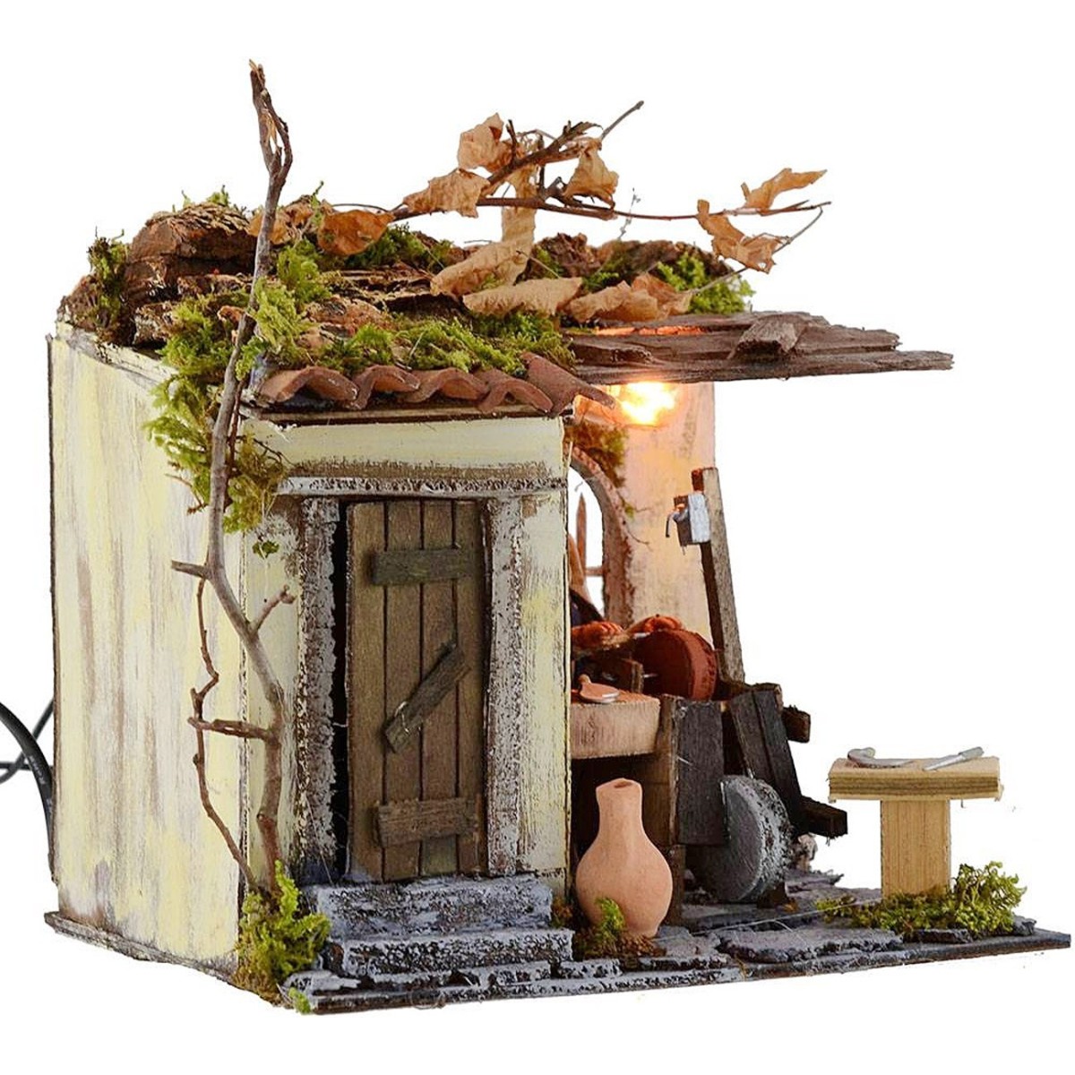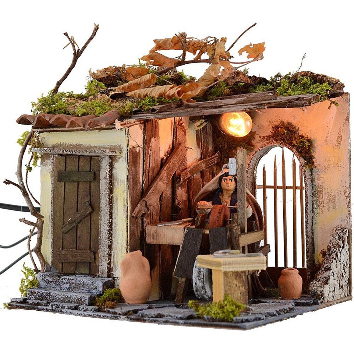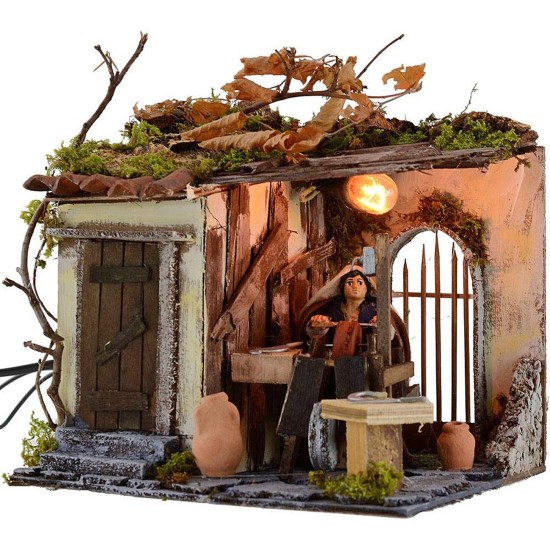 Arrotino in movimento 10 cm, illuminato con luce funzionante a corrente. Statue in terracotta vestita in tessuto.