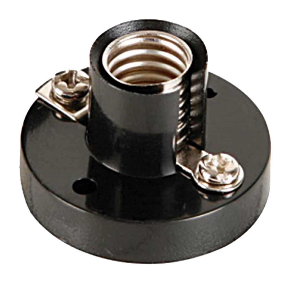 Portalampade attacco E10 con base in plastica nera, collegamento del cavo a vite.