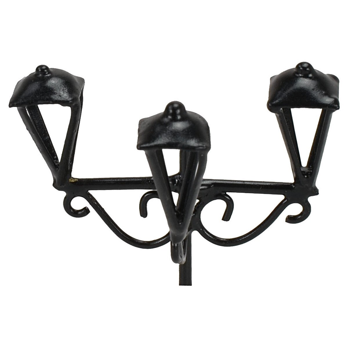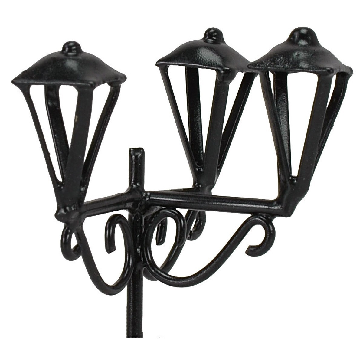 Triplo lampione in metallo senza luce ideale per completare le scenografie del presepe fai da te.