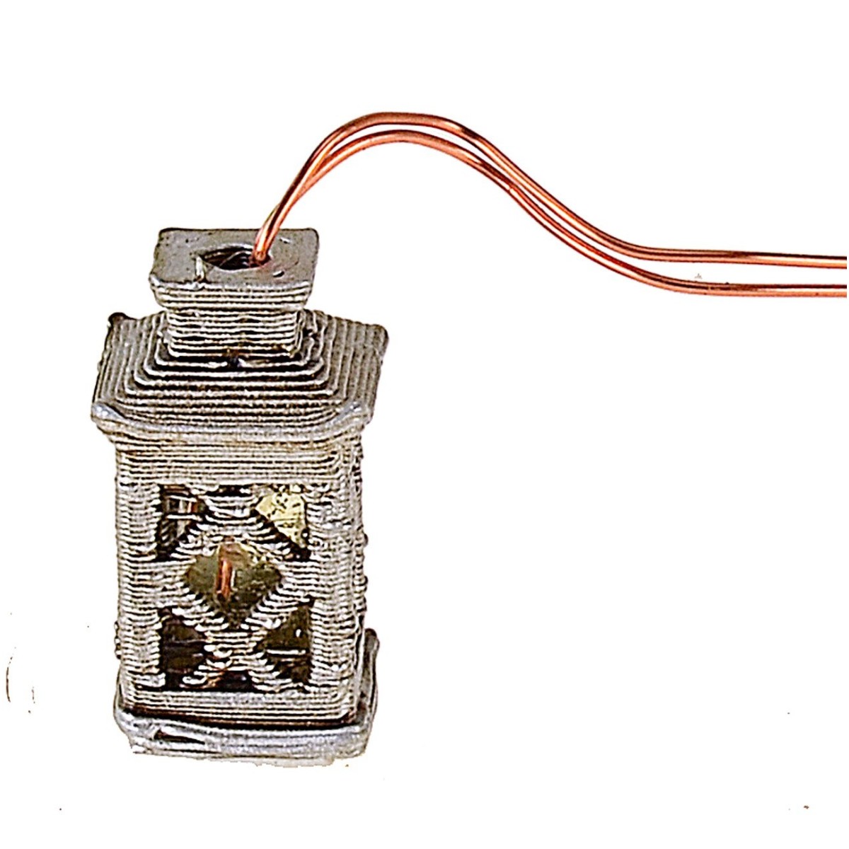 Lanterna ben rifinita funzionante a bassa tensione con led giallo, consigliata per statue di altezza 9-10 cm. Per il funzionamento si può collegare ai terminali del filo la spina per la bassa tensione (non inclusa), la spinetta poi dev'esser inserita nell'alimentatore con multipresa a tensione variabile disponibile a 5 o 10 prese. In alternativa ai terminali del filo si possono collegare i comuni morsetti che verranno a loro volta inseriti nell'alimentatore universale tagliando lo spinotto presente. Tutti gli accessori sopra citati, li potete trovate sotto la tabella nei prodotti correlati.