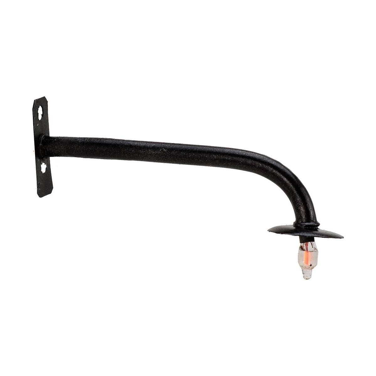 Lampione da parete con piatto in metallo, la luce tenue è di color arancione funzionante a corrente. Dal lampione fuoriescono 2 fili che vanno collegati tramite un morsetto elettrico ad un cavo con la spina, essendo lampioni collegati all'elettricità si raccomanda la massima attenzione. Articolo consigliato per statue con altezza reale da 15 cm a 24 cm.