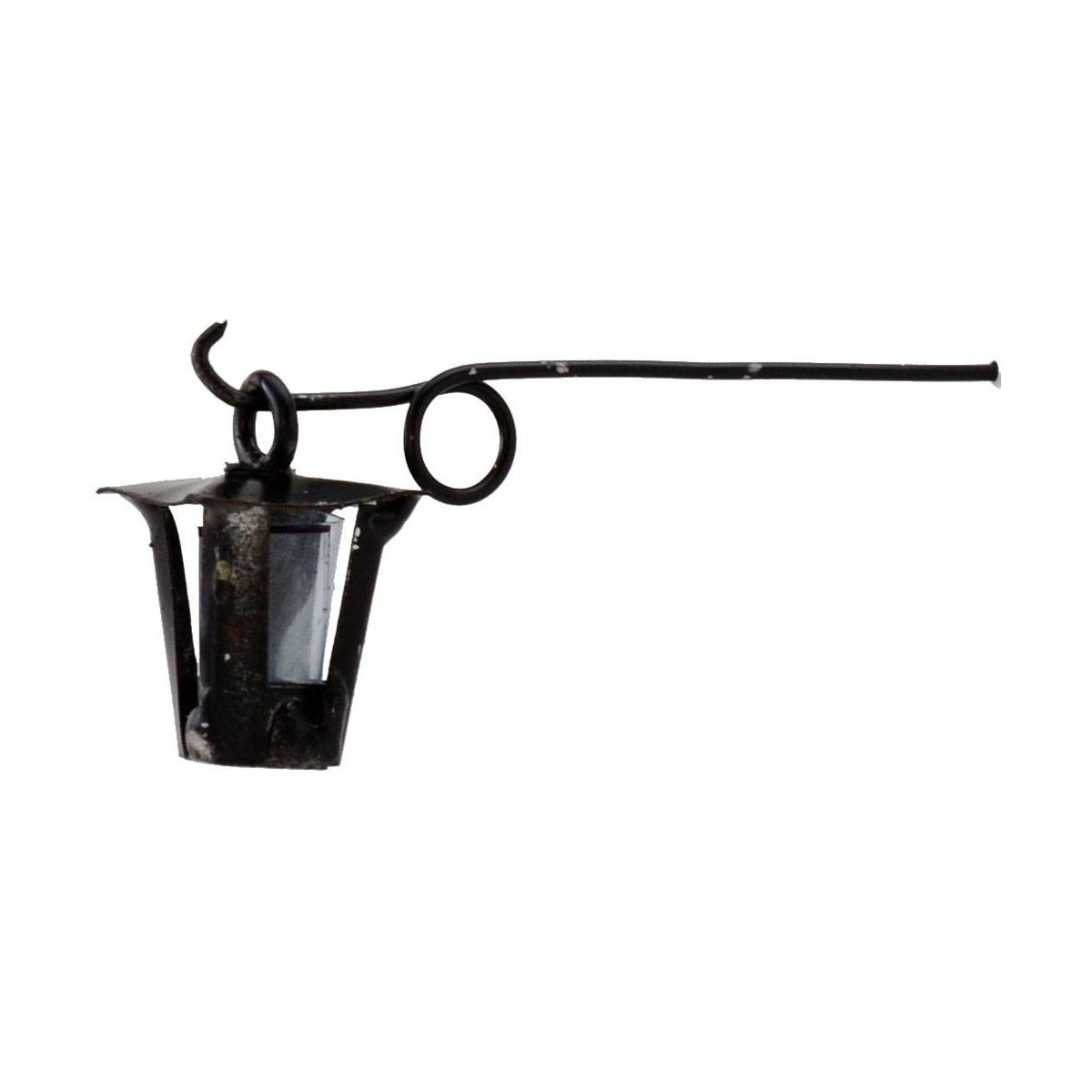 Lanterna in metallo con braccio, al di sopra della lanterna c'è un foro dove si può inserire la luce dato che viene fornita senza, nei prodotti correlati si possono trovare gli articoli adatti a completarla.