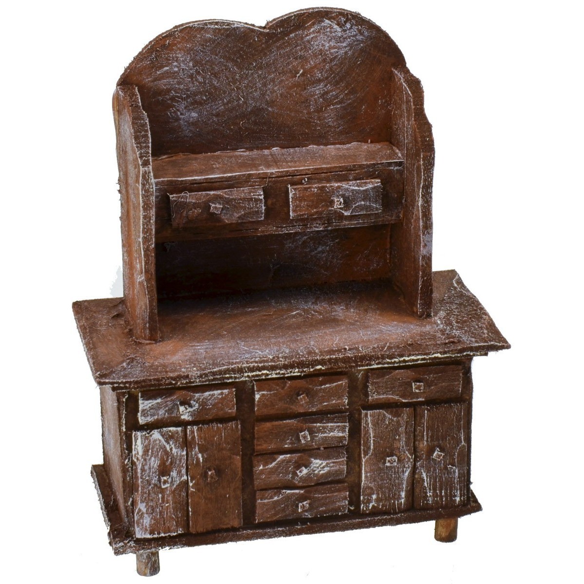 Credenza di legno invecchiato composta da diversi cassettini sia in basso, che al ripiano superiore dov'è possibile decorare utilizzando le minuterie presenti nel nostro negozio. L'articolo è stato prodotto da artigiani italiani ed è consigliato per statue di altezza 12 cm. Nei prodotti correlati sotto la tabella sono presenti altri complementi d'arredo della stessa serie da abbinare per completare l'ambientazione.