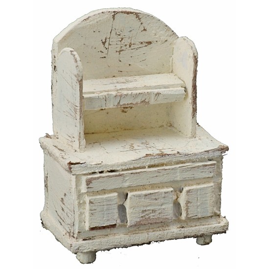 Credenza di legno bianco composta da diverse ante e un cassetto oltre che al ripiano superiore da poter decorare utilizzando le MINUTERIE presenti nel nostro negozio. L'articolo è stato prodotto da artigiani italiani ed è consigliato per statue di altezza 6 cm. Nei prodotti correlati sotto la tabella sono disponibili altri complementi d'arredo della stessa serie da abbinare per completare l'ambientazione.