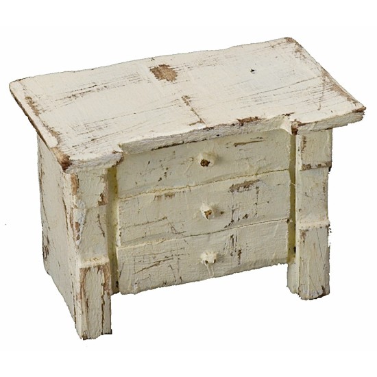 Cassettiera in legno bianco ideale per completare camere di Presepi fai da te o case di bambole. L'articolo è stato prodotto da artigiani italiani ed è consigliato per statue di altezza 12 cm. Nella categoria dedicata alle MINUTERIE sono disponibili tanti accessori per poter personalizzare questo oggetto e nei prodotti correlati sotto la tabella sono presenti altri complementi d'arredo della stessa serie da abbinare poter completare le ambientazioni.