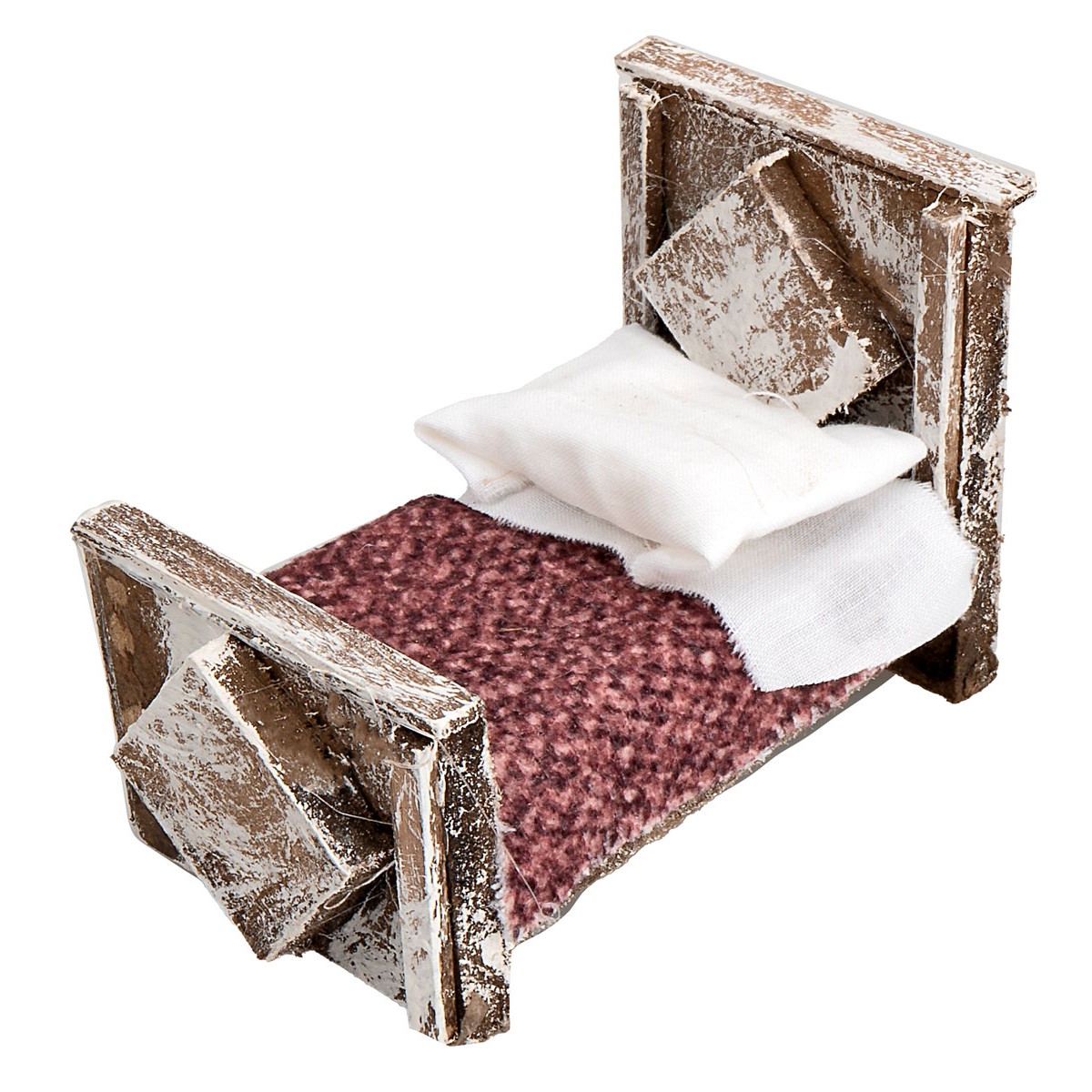 Letto con coperta in legno cm 6,5x4x5,3h per presepe Mondo