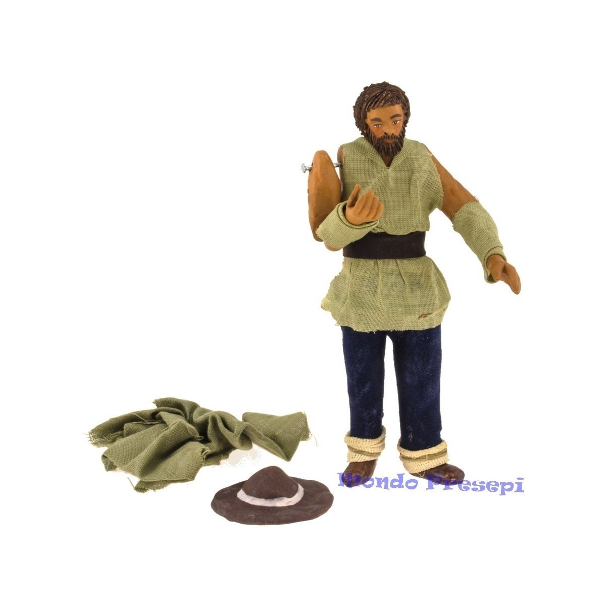 Omaggiante con cappello movibile in terracotta, vestito con tessuto.