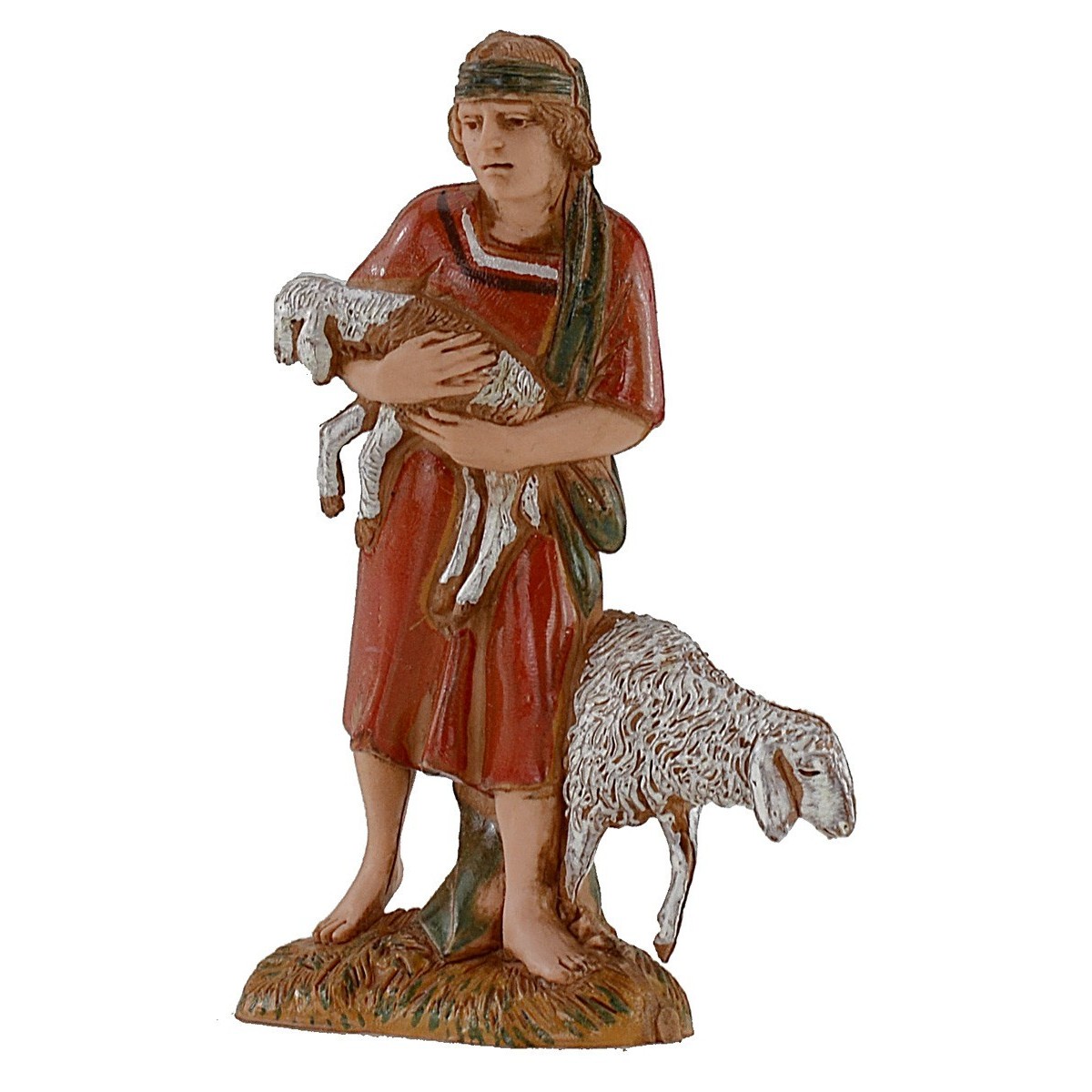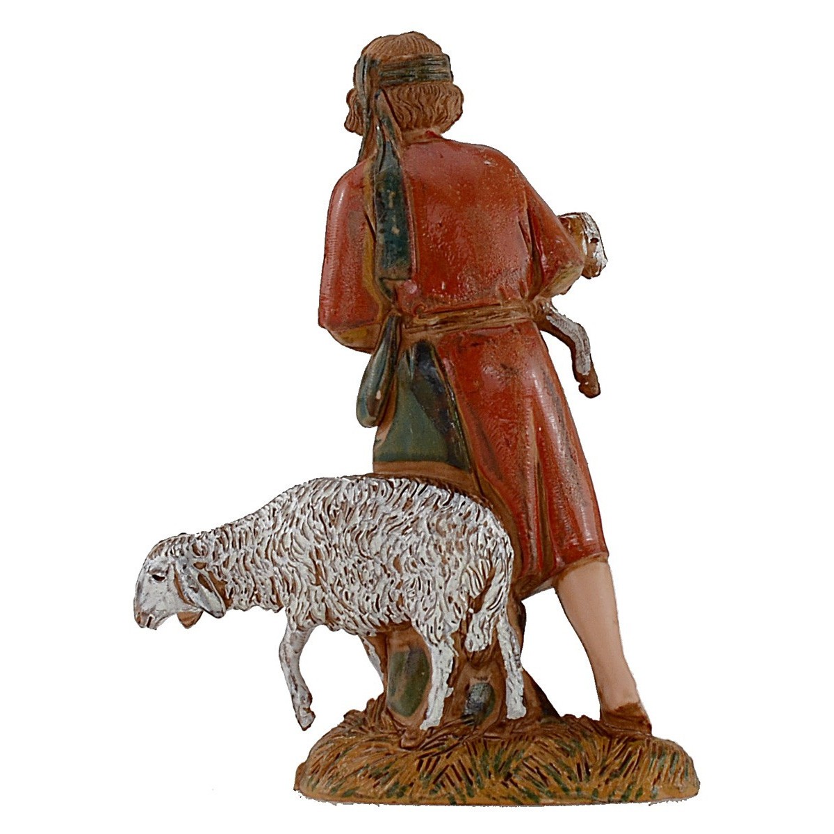 Giovane con agnello in braccio e pecora accanto serie 10 cm Landi Moranduzzo costumi storici. Si precisa che la sopracitata serie misura realmente circa 8,5-9 cm di altezza. Le statue di questo marchio si caratterizzano per la cura nell'espressività dei volti e di ogni singolo dettaglio, infatti tutte le serie firmate Landi sono prodotte e dipinte a mano in Italia.