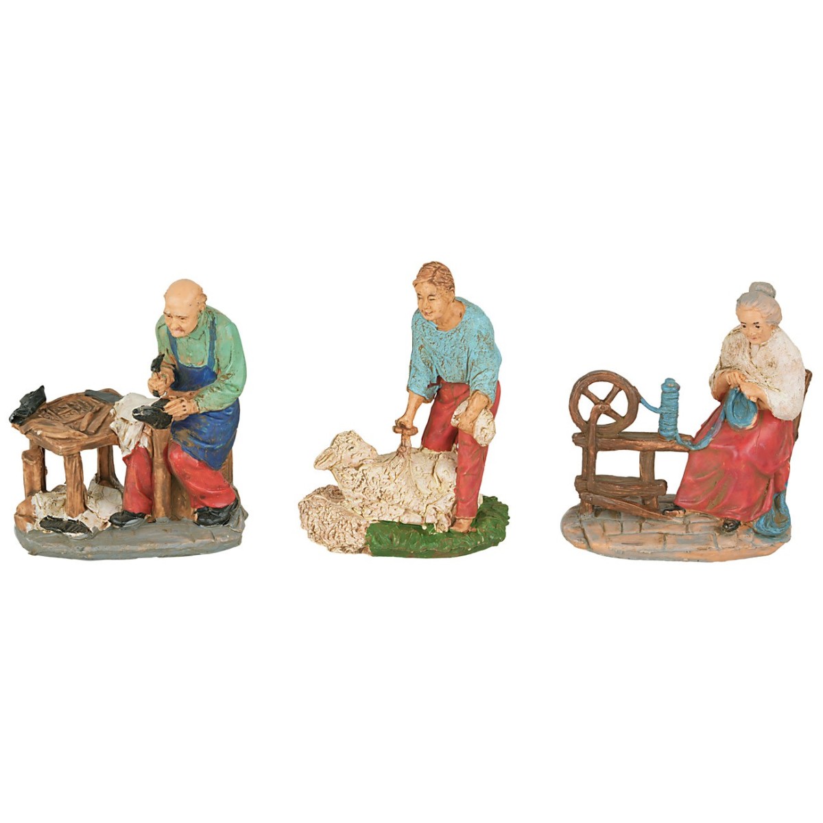 Set 6 artigiani a lavoro di altezza 10 cm per presepe in pvc composto da: sarta, calzolaio, fabbro, pastore con pecora, fornaio, vasaio . Le statuine sono realizzate in Italia e sono ideali completare il presepe. Scopri altri personaggi della stessa serie tra i prodotti correlati sotto la tabella.