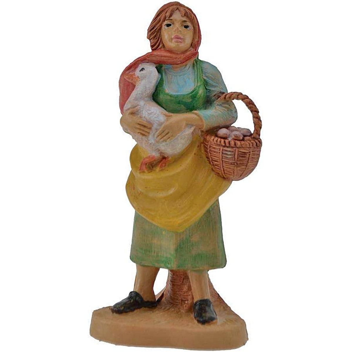 Donna con oca e cesto, altezza 10 cm in pvc lux.