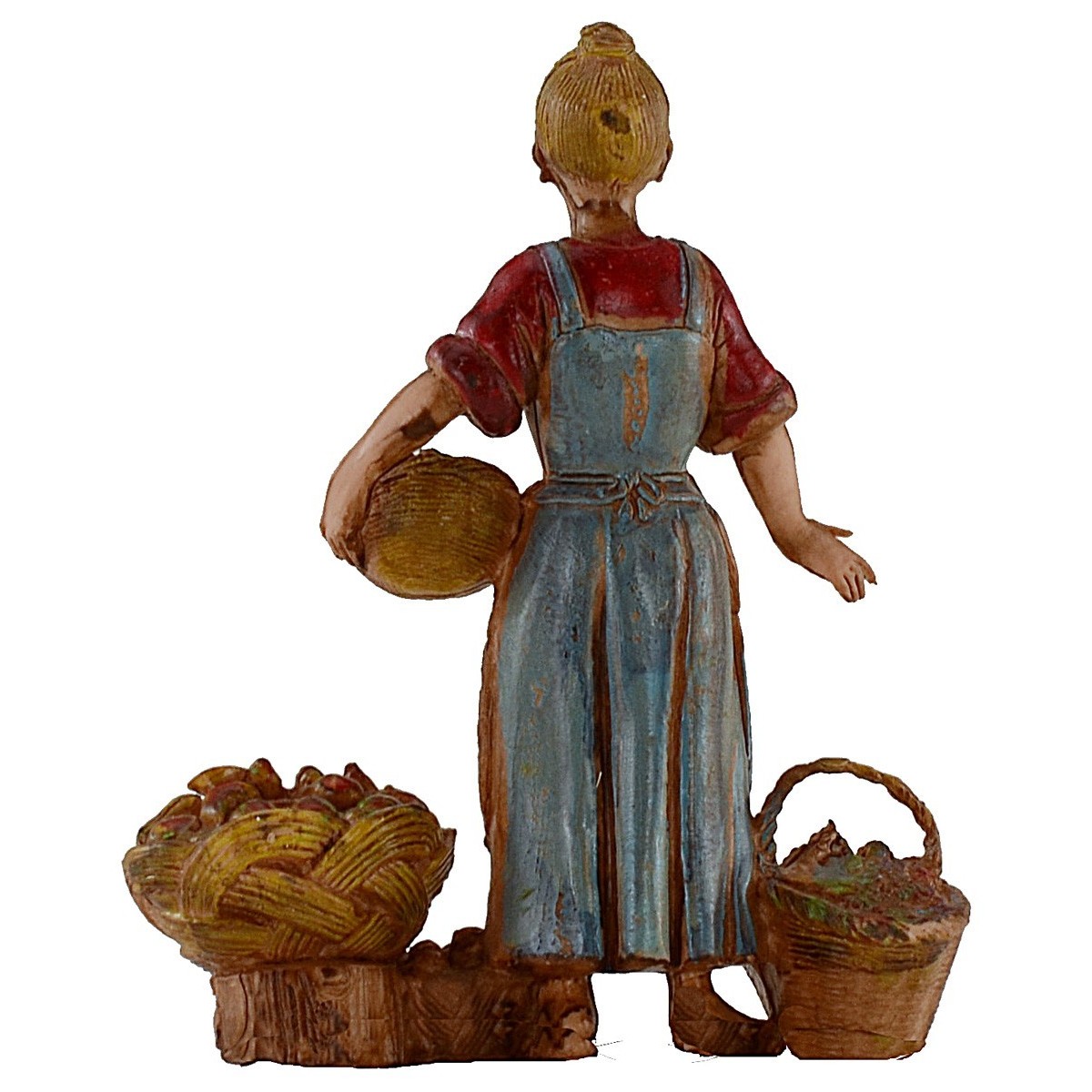 Venditrice di frutta e verdura con cesti 10 cm Landi Moranduzzo. Si precisa che la sopracitata serie misura realmente circa 8,5-9 cm di altezza. Le statue di questo marchio si caratterizzano per la cura nell'espressività dei volti e di ogni singolo dettaglio, infatti tutte le serie firmate Landi sono prodotte e dipinte a mano in Italia.