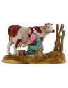 Pastorella seduta che munge la mucca serie 10 cm Landi Moranduzzo. Si precisa che la sopracitata serie misura realmente circa 8,5-9 cm di altezza. Le statue di questo marchio si caratterizzano per la cura nell'espressività dei volti e di ogni singolo dettaglio, infatti tutte le serie firmate Landi sono prodotte e dipinte a mano in Italia.