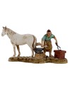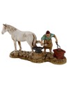 Scena con maniscalco che ferra il cavallo serie 10 cm Landi Moranduzzo. Si precisa che la sopracitata serie misura realmente circa 8,5-9 cm di altezza. Le statue di questo marchio si caratterizzano per la cura nell'espressività dei volti e di ogni singolo dettaglio, infatti tutte le serie firmate Landi sono prodotte e dipinte a mano in Italia.