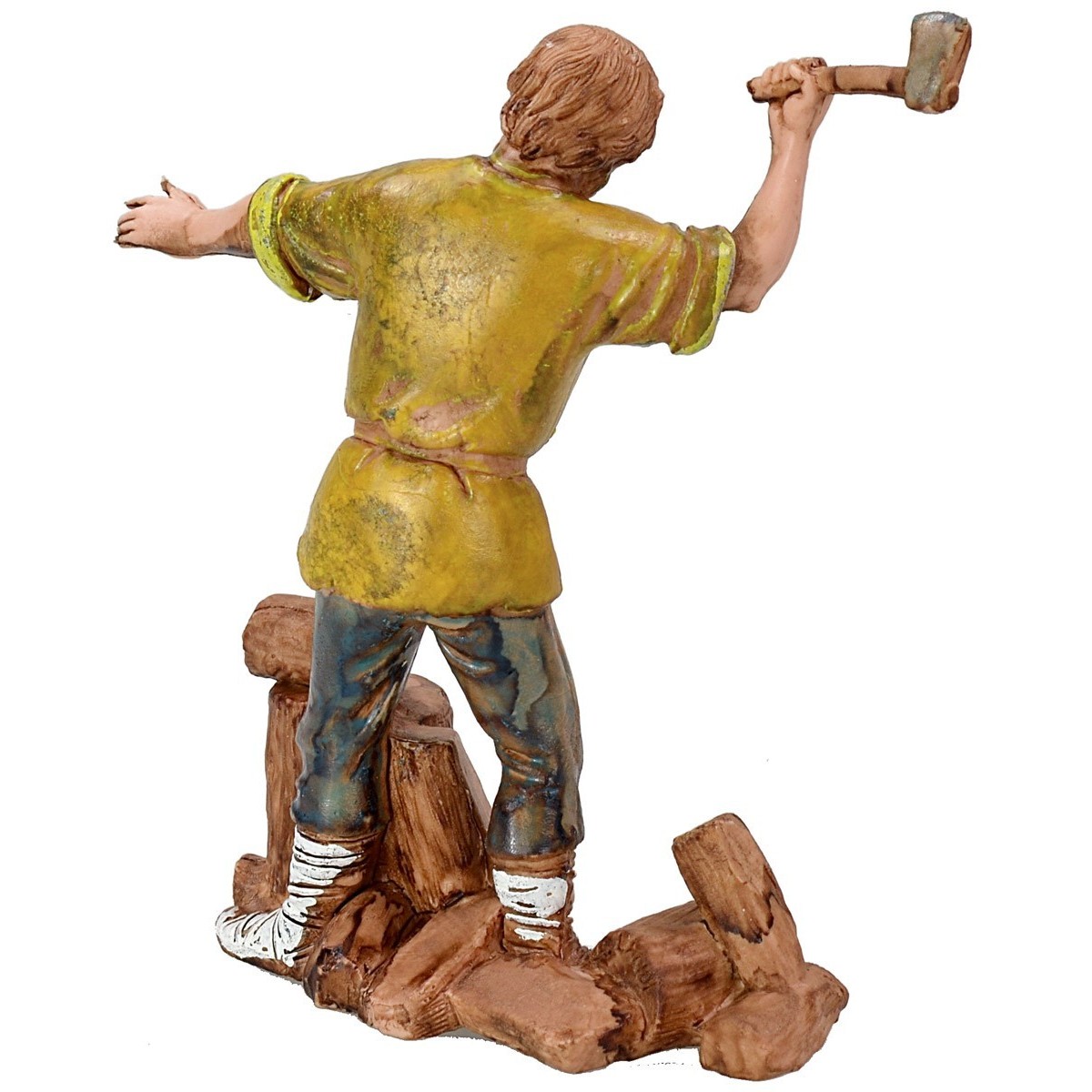 Uomo che spacca la legna serie 10 cm Landi Moranduzzo. Si precisa che la sopracitata serie misura realmente circa 8,5-9 cm di altezza. Le statue di questo marchio si caratterizzano per la cura nell'espressività dei volti e di ogni singolo dettaglio, infatti tutte le serie firmate Landi sono prodotte e dipinte a mano in Italia.