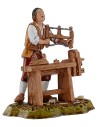 Artigiano che lavora il legno, scena per presepe serie Landi Moranduzzo 10 cm. Si precisa che la sopracitata serie misura realmente circa 8,5-9 cm di altezza. Le statue di questo marchio si caratterizzano per la cura nell'espressività dei volti e di ogni singolo dettaglio, infatti tutte le serie firmate Landi sono prodotte e dipinte a mano in Italia.