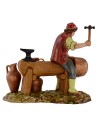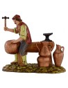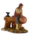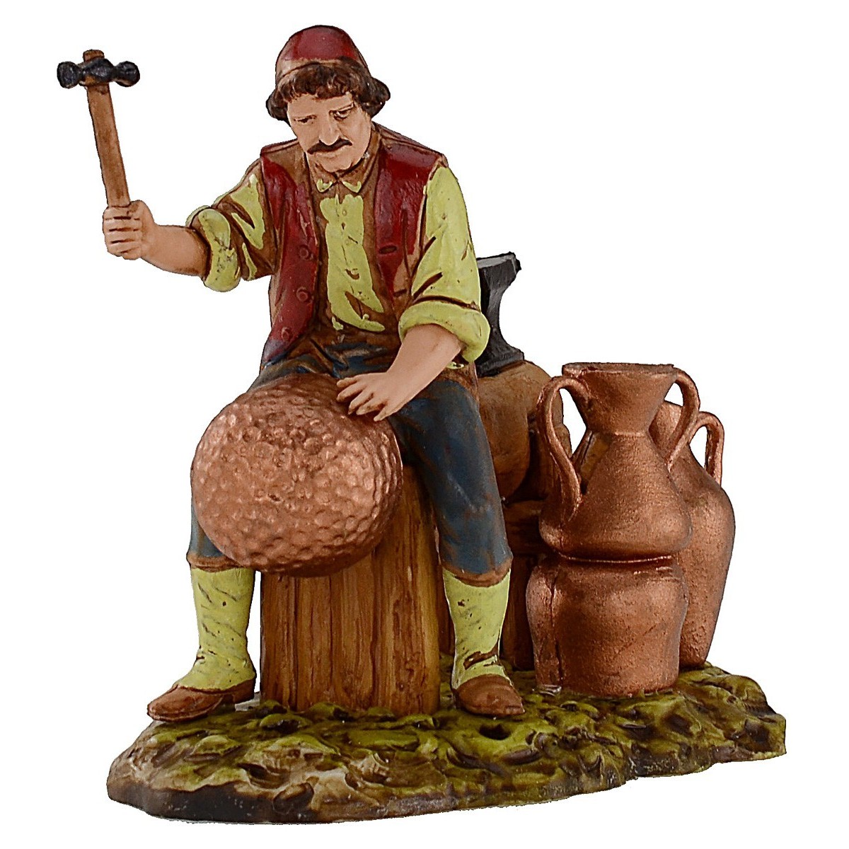 Artigiano seduto che lavora il rame, scena per presepe serie Landi Moranduzzo 10 cm. Si precisa che la sopracitata serie misura realmente circa 8,5-9 cm di altezza. Le statue di questo marchio si caratterizzano per la cura nell'espressività dei volti e di ogni singolo dettaglio, infatti tutte le serie firmate Landi sono prodotte e dipinte a mano in Italia.