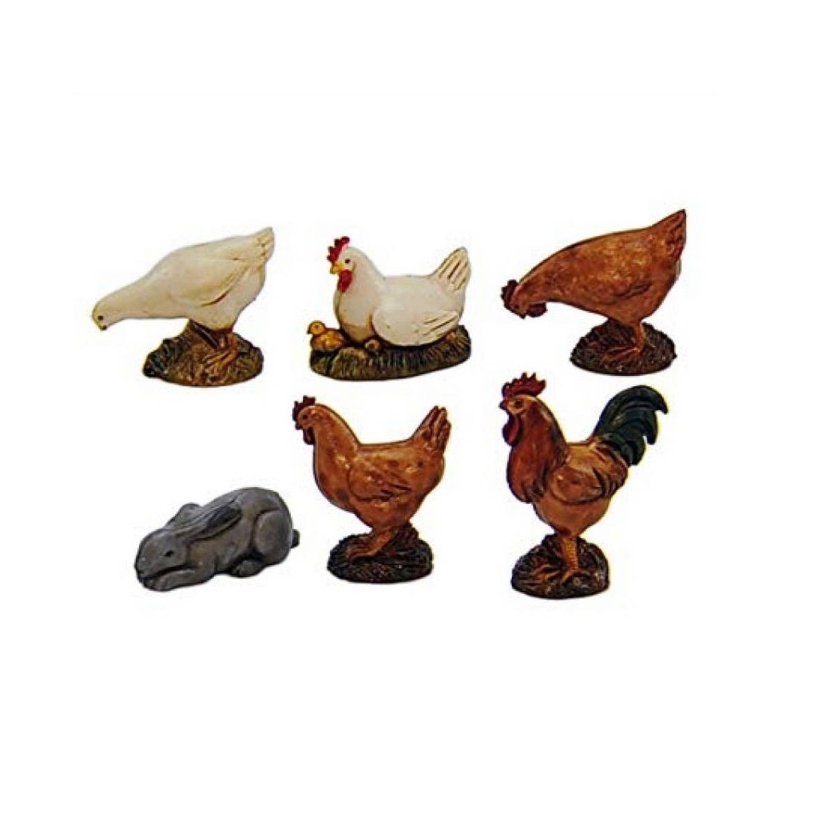 Set 6 animali da cortile serie 10 cm Landi Moranduzzo composto da: gallo, 2 galline, chioccia con pulcino, oca e coniglio. Consigliato per statue altezza 8-10 cm.