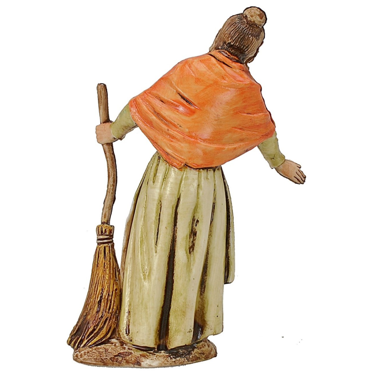 Donna con la scopa mentre spazza serie Landi Moranduzzo 10 cm. La statua e predisposta per l'inserimento in qualsiasi ambientazioni o da mettere affacciata ad un balcone. Si precisa che la sopracitata serie misura realmente circa 8,5-9 cm di altezza. Le statue di questo marchio si caratterizzano per la cura nell'espressività dei volti e di ogni singolo dettaglio, infatti tutte le serie firmate Landi sono prodotte e dipinte a mano in Italia.