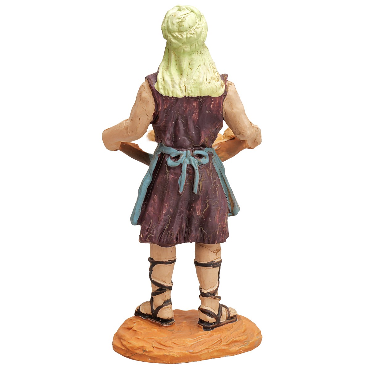 La statua è realizzata in durexina ed è dipinta a mano con attenzione ai minimi dettagli, come i colori degli abiti, l’espressione del volto e la resa del pane nel cesto.