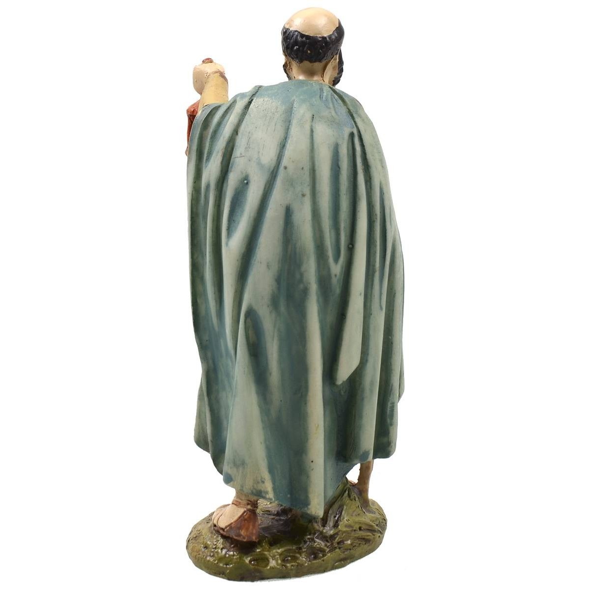 Viandante con bastone e lanterna di altezza 12 cm. Questa serie economica d'importazione è stata disegnata dallo scultore Martino Landi ed è prodotta in resina dipinta.