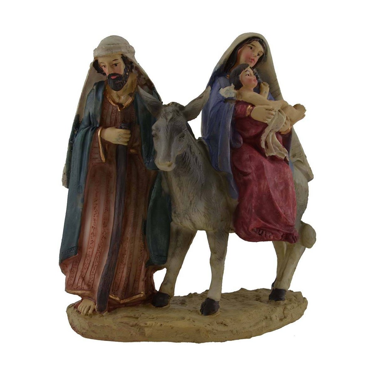 Fuga in Egitto in resina, altezza 14 cm. Statue che rappresentano la Vita di Gesù.