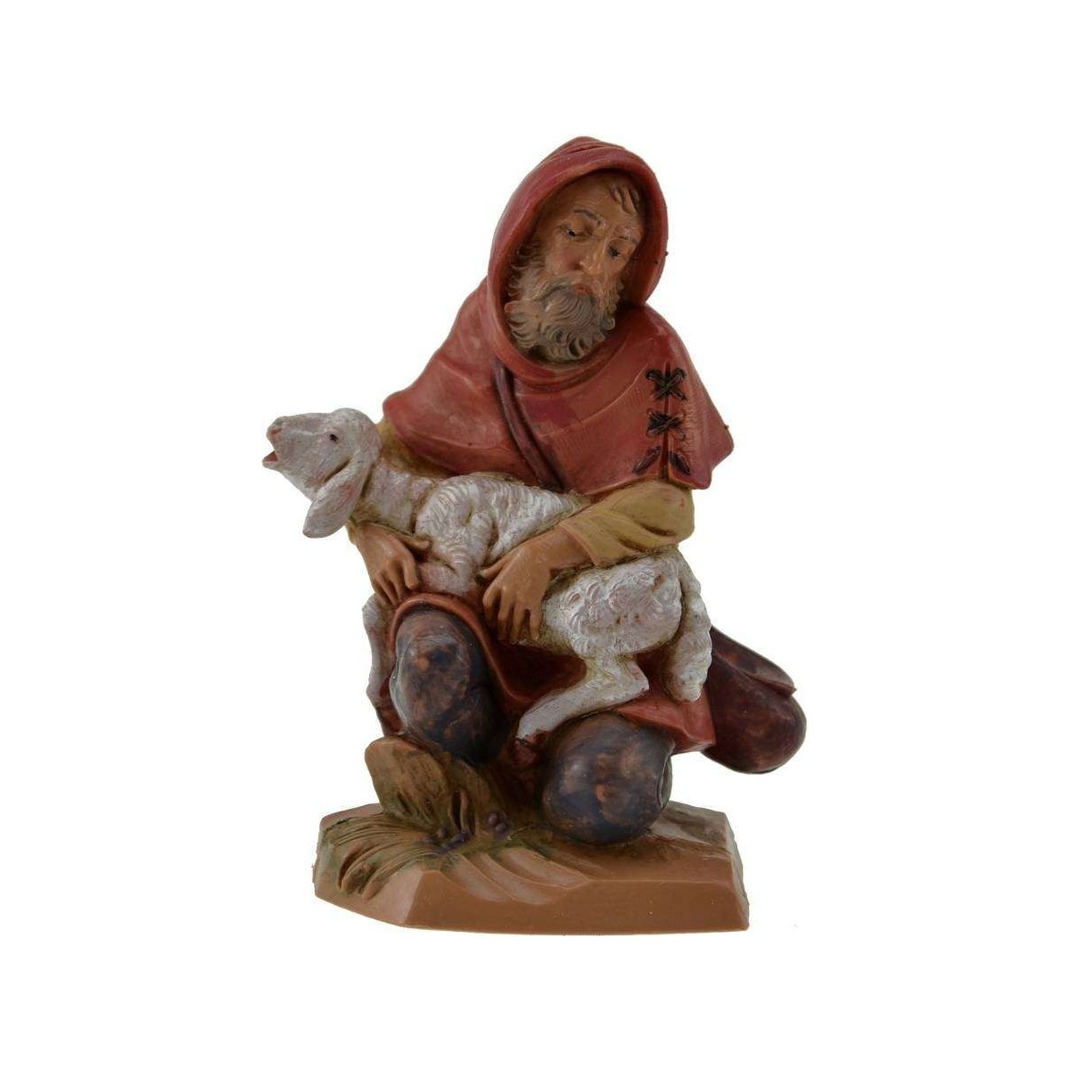Pastore seduto con pecora tra le braccia, serie Fontanini 12 cm.