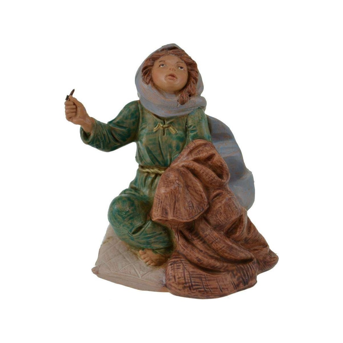 Donna seduta che cuce, serie Fontanini da 12 cm.