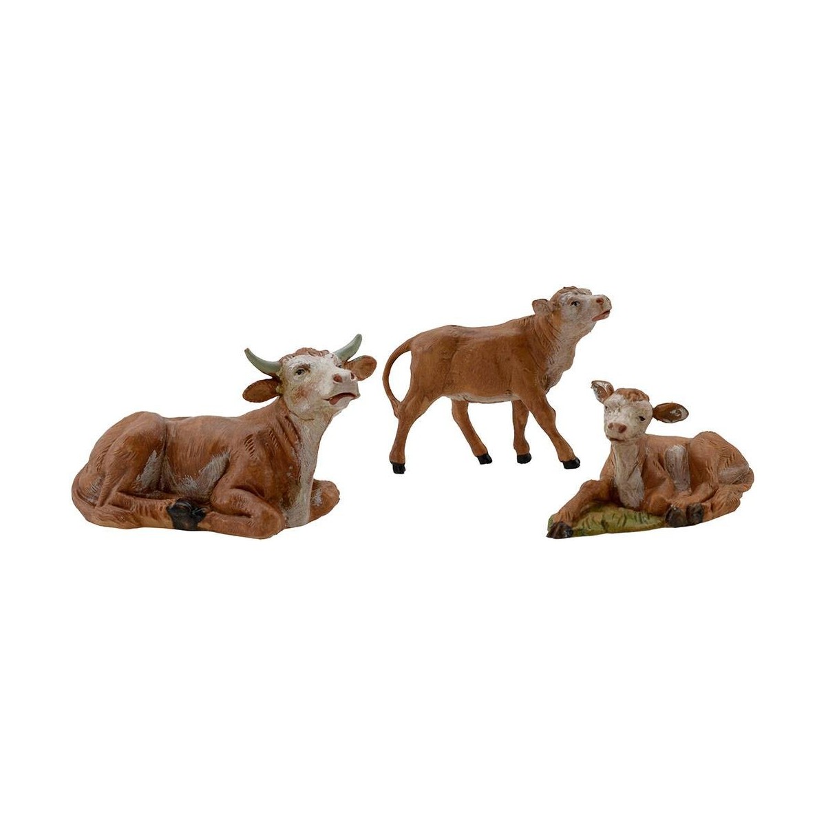 Famiglia di bovini serie 12 cm Fontanini. Il set è composto dal bue e da due vitelli.