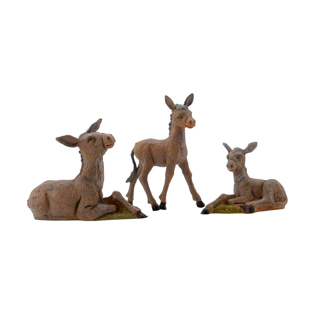 Famiglia di asini serie 12 cm Fontanini. Il set è composto da un asino e due asinelli.