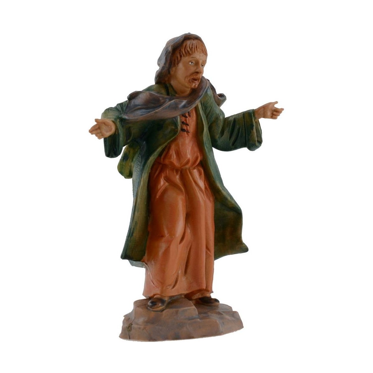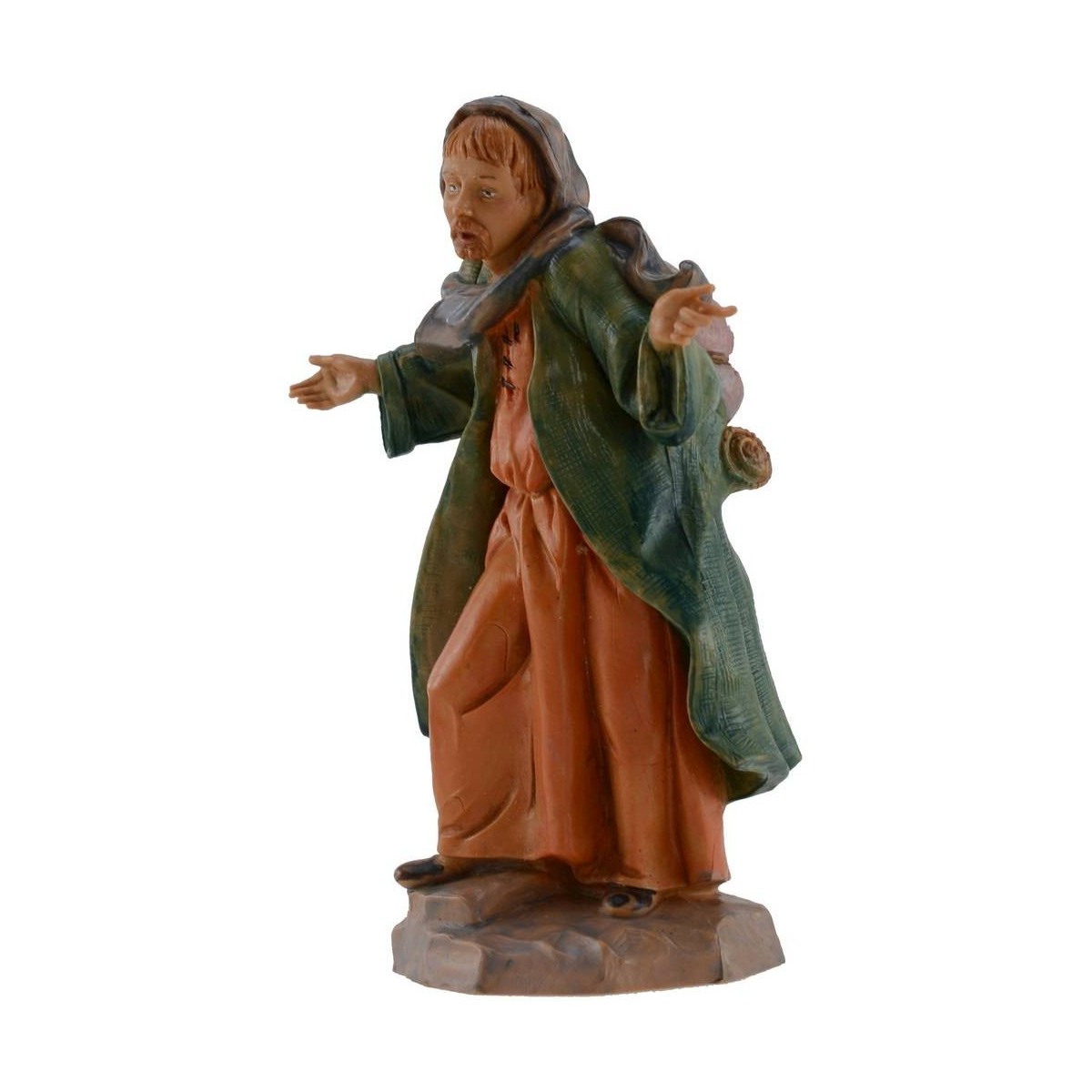 Viandante con zaino in spalla serie 12 cm Fontanini dipinto a mano. Le statue del presepe tradizionale Fontanini hanno volti espressivi e ben rifiniti nei dettagli.